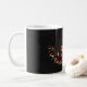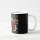 Elegant och chic kaffekopp med vackra burgunderfärgade blommor och några eleganta gula blad .
