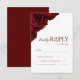 Modern bröllops-RSVP-kort elegant burgunder med guldstoft på med en guld bläck häll effekt (guldet är en digital effekt, inte verklig folie) och modern kalligrafi. Klassiskt och elegant, enkelt och modernt bröllopskort.