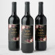 Elegant burgunderblomma svart guld vinflaska etikett