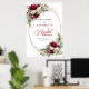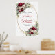 Elegant burgunderfärgad bröllopssköld med blommor poster