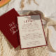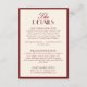 Enkla och stilrena retro-färgade detaljer för bröllopsgäster. Med krämfärgad chic bakgrund och burgunderfärgad textlayout med lekfulla, klassiska formuleringar. All information kan anpassas som webbplats, transport, boende. Köp den tillsammans med andra produkter från denna eleganta, handgjorda retrobröllopssvit.