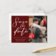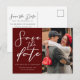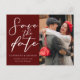 Detta solida burgunderfärgade bröllopskort för att spara datumet har klassisk vit skrivstil för ett par som gifter sig på kvällen. Anpassa med ditt favoritfoto från förlovningen. Fira din kärlek med denna djärva, romantiska färg och koordinera med vår matchande minimalistiska typsnittsamling.