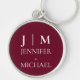 Elegant Burgunderröd Monogram Bröllop Rund Silverfärgad Nyckelring