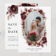 Elegant burgunderröd rosblommig bröllop spara datumet