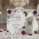 Förhöj din moderna ceremoni med denna sofistikerade mörka vinröda blomsterlayout, med sömlös smartphone-integration och slående röda blommor. Denna layout använder en högkontrast-estetik med djupa vinröda och mörka karmosinröda blomillustrationer som ramar in en skarp, off-white bakgrund. Den visuella hierarkin kombinerar klassisk serif-typografi med rena, moderna sans-serif-teckensnitt, och styr medvetet ögat till ett centralt placerat, skannbart matrisblock för digital gästinformation. Kompositionen balanserar elegant sofistikerad botanisk konstnärskap med teknikvänlig funktionalitet. Detta är en platt tryckt bild med en falsk vattenfargeffekt, inte faktiskt upphöjt material.