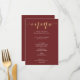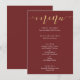 Dessa eleganta menykort i burgunderrött och guld typsnitt kommer att skapa scenen för en elegant middagsupplevelse. Den falska guldfolien för ordet "meny" kommer att passa bra ihop med många olika bakgrundsfärger om du önskar anpassa.
