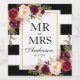Elegant Burgundy Blommigt Black White Stripe Vinflaska Etikett