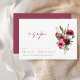 Elegant Burgundy Blommigt Bouquet Bröllop OSA Card. Stilt inbjudan dina gäster till bröllop med den här eleganten blommigt-burgundi, blommigt bröllop OSA-kort, med en fantastisk mängd rött, lila och rosa ros, och nejlikor över en vanlig vit bakgrund, med ett typsnitt som matchar snyggten och en djup röd bakgrund på baksidan av kortet. Detta moderna ge med bröllop OSA och elegant känner sig naturligt för blommigt, feminin, rött, lila och/eller rosa bröllop. Den här eleganten, burgundi, bröllop OSA-kortet anger tonen för alla eleganter, blommigt bröllop som omges av rosa, lila och röda blommor och blommigt-buketter, och matchar neutralt-färgad-bröllop-dekorering. En perfekt utöver någon elegant, blommigt bröllop firande. Söndag Collective © av Rachel Hannah Gee