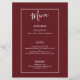 Elegant Burgundy Blommigt - bröllopsmottagningsmen Meny