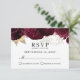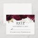 Elegantens moderna botaniska bröllop OSA-responskort är perfektens komplimang till dina bröllopsinbjudningar. Med en vacker burgundisk mörk röd ros-design med faux guld inslag kan dessa svarskort anpassas med dina teckensnittsalternativ och färg. Observera att guld i denna utformning är ett platt gult beige färg och inte en guld eller färg.