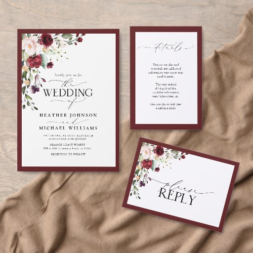 Elegant Burgundy Blommigt Vattenfärgsfoto Inbjudningar