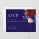 Elegant Burgundy Blue Blommigt Bröllop OSA budget Vykort