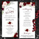 Det här vackra bröllopsprogrammet har en elegant blommigt med en chic med handmålad ro i röda nyanser, burgnypa och rosa på vit bakgrund. Titlarna skrivs i finare-skriptkalligrafi, och det finns plats för din ceremoni och bröllopsfest, samt ett tack för kort för din gäst. Underbart sätt att välkomna dina vänner och din familj till bröllop firande.
