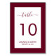 Elegant burgundi bröllop bordsnummer. Anpassa enkelt onlinen. Matchande artiklar som är tillgängliga för att komplettera detta moderna bordsnummer-kort för burgundy bröllop.