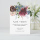 Stilren Rustik Modern Burgundy Dammtor Blå Blommig Akvarell Lövverk Grönska Boho Trädgårdsbröllop Spara Datum