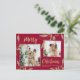 Elegant, Modern Burgundy och Guld Botanical Löv 2 Photo Collage God jul Helgdag Postcard. Den här festliga, visuella, två (2) helgdag-vykortsmallen innehåller ett söt fotokollage, faux guld foil botanical löv, wintbär och säger God jul! Texten "God jul" hälsning är skriven med ett vackert, handskrivet typsnitt på burgundröd bakgrund eller vid kantbakgrund. Söt hälsning vykort till din familj och dina vänner under denna jul och Julhelg.