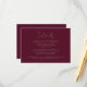I den här eleganten finns det ett kort för modern bröllop-information i höljet med guld-färgad i en burgundisk bakgrund. Titeln visas i ett vackert handskriftsskript, med anpassadet nedan i sans serif-teckensnitt. Baksidan är massiv burgundi.