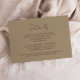 Detta eleganta moderna bröllopsdetaljer bifogad kort har burgunderröd text på en guldfärgad bakgrund. Titeln visas i vacker handskrift, med anpassningsbar text nedan i sans serif-teckensnitt. Baksidan är enfärgat burgunderröd.