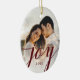 Elegant Burgundy Joy Script Photo Jul Julgransprydnad Keramik