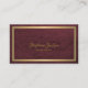 Classy luxury vintage style elegant calligraphy business card with a faux gold metallic frame over a burgundy oxblood leather look background. ++++++++++++ Suitable for exclusive beauty salon, luxurious boutiques,beautician, interior designer, makeup artist, hair stylist.