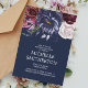 Elegant 80 födelsedagsfest inbjudan för kvinnor med burgundi, marinblått och vitt vattenfärgade blommor och grönt mot marinblå bakgrund. Kontakta mig för hjälp med anpassning eller för att be om matchning eller samordning av Zazzle-produkter.