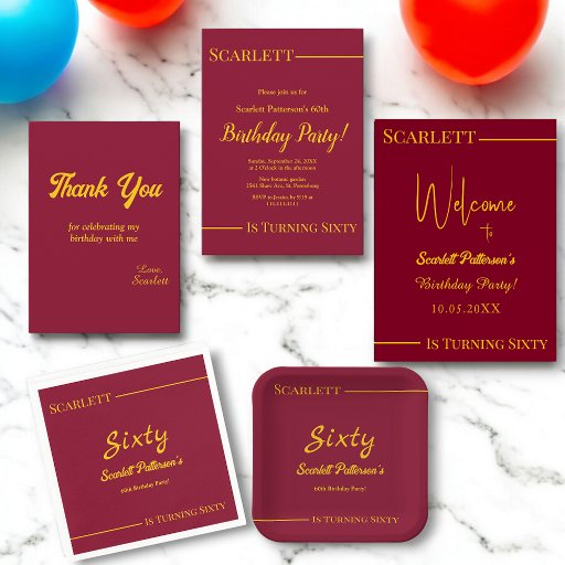 Elegant Burgundy och Guld Luxury 60:e födelsedagen Inbjudningar