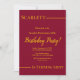 Den här elegantens burgundi- och guld-födelsedagsinbjudan är perfekt för en modern födelsedag. Den enkla designen har elegant guld-kalligrafi på en burgundisk bakgrund.