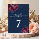 Elegant Burgundy Red Navy Blue Blommigt Peonies Bordsnummer
