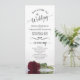 Detta vackra bröllopsprogram har en elegant med en enda lång slemmig burgnisk, maron eller vin-röd färgad ro som ljuger på sin sida och reflekterar i vatten. Rubrikerna är skrivna i finare-manusjografi, och det finns utrymme för din ceremoni och bröllopsfest, samt ett kort-tack för dina gäster. Underbart sätt att välkomna dina vänner och din familj till bröllop firande.