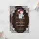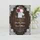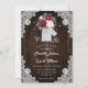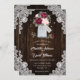 Rustisk burgundi och bröllopsinbjudning med en bukett av baby utandningsblommor, burgundi och ro inuti en mason burk mot en lada-bakgrund som är försedd med vit blommigt snöre och skinkle ljus. Utformning av perfekt för att bjuda in gästerna till din burgundära och rustiska bröllopsfest.