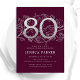 Elegant Burgundy Silver 80:e födelsedagen Inbjudningar