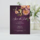Elegant Burgundy-skript för Moody Blommigt Bröllop Spara Datumet
