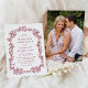 Create a rich, romantic impression with this Elegant Burgundy Victorian Floral Photo Wedding Invitation. Deep wine-colored lettering and intricate Victorian botanical detailing give the front a dramatic, heirloom-style look, while the back displays your vertical engagement photo for a heartfelt, personal element. The luxurious burgundy palette makes this design especially fitting for fall and winter weddings, formal celebrations, and couples who love classic romance with depth and warmth.