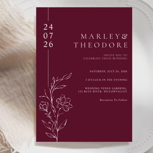 This elegant RSVP card features a deep burgundy background with clean white typography for a modern and refined look. The layout includes a dedicated space for your custom QR code, making it easy for guests to reply online or access your wedding website. The simple and polished design pairs well with classic, formal, fall, and winter wedding themes. It offers a convenient and stylish way to collect guest responses while keeping your burgundy wedding suite coordinated.