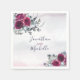 Elegant Blommigt Bröllop Napkin skildrar vackra vattenburgundi, blått och vit ros med silver och grönt löv över stänk av dammig grått och rosa.*