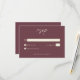 Celebrate your love with this minimalist burgundy wine wedding response card without dinner choices design. Featuring an elegant, simple design, it's perfect for an elegant autumn ceremony. This earthy, modern look offers a warm and sophisticated feel for your fall wedding. Created by Simply Farmhouse Press.