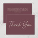 Celebrate your love with this minimalist burgundy wine wedding thank you card design. Featuring an elegant, simple look, it's perfect for an elegant autumn ceremony. This earthy, modern look offers a warm and sophisticated feel for your wedding. Created by Simply Farmhouse Press.