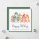 Kort för helgdag i elegant till jul för ditt företag med en modern abstrakt för vattenfärg i gräs träd, Glad helg i ett snyggt-skript och ditt företag namn i klassisk serif-typografi. På baksidan lägger du till din logotyp, en personlig säsong hälsning och ett meddelande om kunduppskattning, och din webbplats eller annan information om du vill.