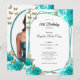 This elegant teal and gold 18th birthday debut invitation has teal roses and gold butterflies with a personalizable template to create your own message. Add your photo on the back to personalize the image. The invitation template is customizable in the listing editor and is also available as a digital download that's printable after you personalize it. This is a modern, blingy design that's still traditional enough for an elegant milestone birthday.