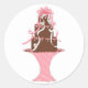 Ett söt-klistermärke som kan läggas till födelsedag paket, för barn, party, möhippor osv. En chokladdesigner-kaka med rosa trim. Söt rosa och vit rosett band som går ner på ett söt rosa tårtstativ!