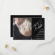 De här vackra korten är perfekten för att låta dina vänner och din familj veta att spara datumet för ditt kommande bröllop. De har en modern minimal 2-fönsterdesign med ditt foto på det lämnat och det elegant vita skriptkalligrafin som stavar "spara datumet" på högerna tillsammans med alla nödvändiga detaljer på en svart bakgrund. Det svarta och vita temat ge ger ett utseende som är både contemporary och klass.