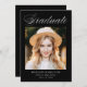 Elegant studenten meddelande med "Student" överst i ett vitt kalligrafiskt skript med svart bakgrund. Utformningen visar bilden av student med student namn, namn och studenten som visas nedan. Fotomeddelandet studenten återgår till visningens valfria text, t.ex. framtida planer, information om studentfesten osv. Chic studenten-meddelandet är perfekten för att tillkännage studenten i både högskolan och högskolan studenter.