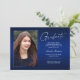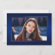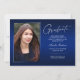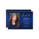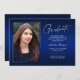 Dubbla sida vid sida, två fotomoderna och elegant studenten-annonskort, med inslag av modern text med ett unikt handskrivet stil bläck-skript. Bilderna på student:s framsida och baksida är accentuerade med en delikat och minimalistisk övertoningsmarkör (bakfotonet är perfekt inställt och redot ska ramas in). Bakgrunden är en speciell övertoningskonstruktion som skapar vackert vibrerande nyanser av blått från safir till djupt marint blått. På kortets framsida finns det textblanksteg för personlig för information om studenten eller så kan du skriva om den för att göra kortet till en gradgruppsinbjudan. Perfekt för högskolan, högskolan och universiteten grad student.