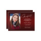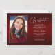Dubbla sida vid sida, två fotomoderna och elegant studenten-annonskort, med inslag av modern text med ett unikt handskrivet stil bläck-skript. Bilderna på student:s framsida och baksida är accentuerade med en delikat och minimalistisk övertoningsmarkör (bakfotonet är perfekt inställt och redot ska ramas in). Bakgrunden är en speciell övertoningsdesign som skapar vackert vibrerande röda nyanser som sträcker sig från ruby till djup burgundi. På kortets framsida finns det textblanksteg för personlig för information om studenten eller så kan du skriva om den för att göra kortet till en gradgruppsinbjudan. Perfekt för högskolan, högskolan och universiteten grad student.