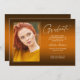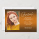 Dubbla sida vid sida, två fotomoderna och elegant studenten-annonskort, med inslag av modern text med ett unikt handskrivet stil bläck-skript. Bilderna på student:s framsida och baksida är accentuerade med en delikat och minimalistisk övertoningsmarkör (bakfotonet är perfekt inställt och redot ska ramas in). Bakgrunden är en speciell övertoningsdesign som skapar vackert vibrerande nyanser av bränd orange. På kortets framsida finns det textblanksteg för personlig för information om studenten eller så kan du skriva om den för att göra kortet till en gradgruppsinbjudan. Perfekt för högskolan, högskolan och universiteten grad student.