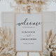Modern och elegant bröllop-skylt med enkelt och snyggt svart skript på vit bakgrund. Anpassa med din unika information.
