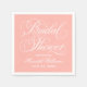Napkins i möhippan i bröllop har en vit kalligrafskriptutformning som kan vara personlig med bridens namn och duschdatum.