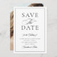 Med det här alternativet Spara datumet hämtas både tidlös elegans och personlig charm. Framsidan har en sofistikerad svartvit design med flytande kalligrafi som anger en förfinad ton för firande. På baksidan ger en fullt-blekt foto liv åt din berättelse och ger dig en uppriktig glimt in på resan som ett par. Det är inte bara ett meddelande - det är ett minne som delas på ett vackert sätt. Perfekt för bröllop som balanserar den klassiska traditionen med modern storberättelse, skapar denna design ett varaktigt intryck. Fotodetaljen gör det idealiskt för par som vill anpassa sitt kontorsmaterial på ett meningsfullt sätt, oavsett om det är ett favoritfoto, ett förlovning i ett öppet ögonblick eller ett bild som kapslar in kärlek. Det här sparar datumövergångarna utan problem mellan formella svartvita evenemang, intima sammankomster och romantiska utomhusceremonier. Det är mer än ett kontorsmaterial. Det är en keepsaké som dina gäster kommer att uppskatta långt efter den stora dagen. Upphovsrätt Anastasia Surridge, alla höger reserverade.
