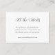 Behöver du mer information om din inbjudan? Det här anpassadets adapterkort har två anpassningsbar fält för att dela viktig information med dina gäster. Design innehåller mjuka, svarta calligrafskript och kursiva bokstäver med en solid mjuk baksida. Anpassa texten och anpassa för att matcha färgen eller temat för evenemanget. Kortet "All the Details" i bröllop ger gäster möjlighet att besöka webbplatsen för mer information.