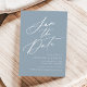 Elegant Calligraphy Dusty Blue Bröllop Spara Datumet